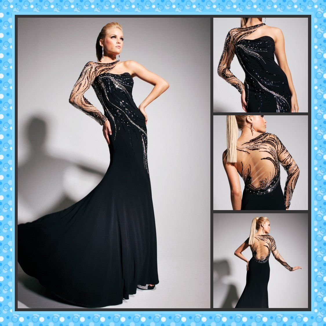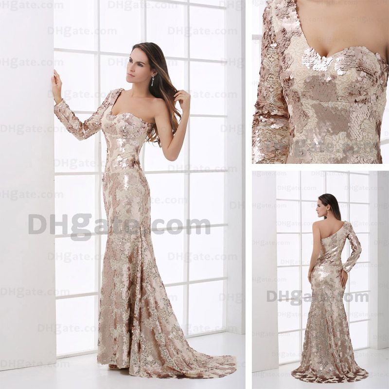 One shoulder long sleeve evening dresses
