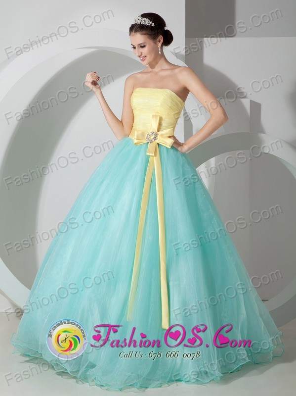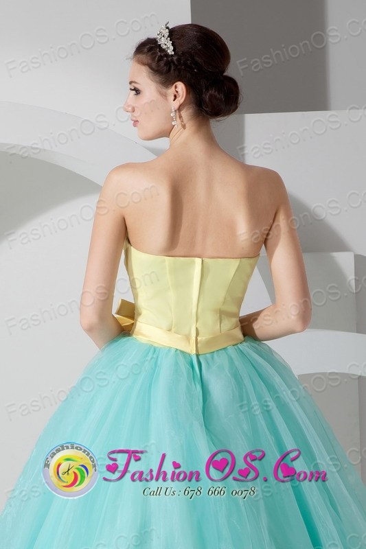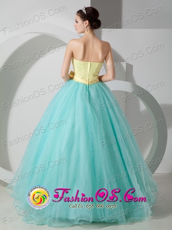 Blue and yellow evening dress